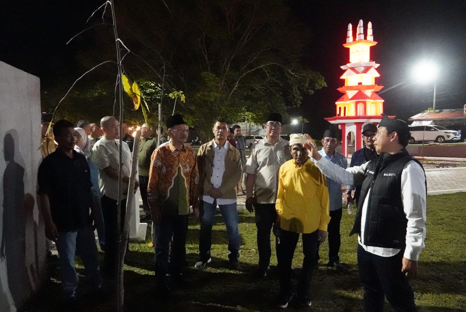 Taman Tabut ini diresmikan Senin malam (6/6/26). Gemerlap cahaya lampu yang menghiasi Taman Tabot menghadirkan suasana malam yang indah dan estetik di kawasan Taman Benteng Marlborough.