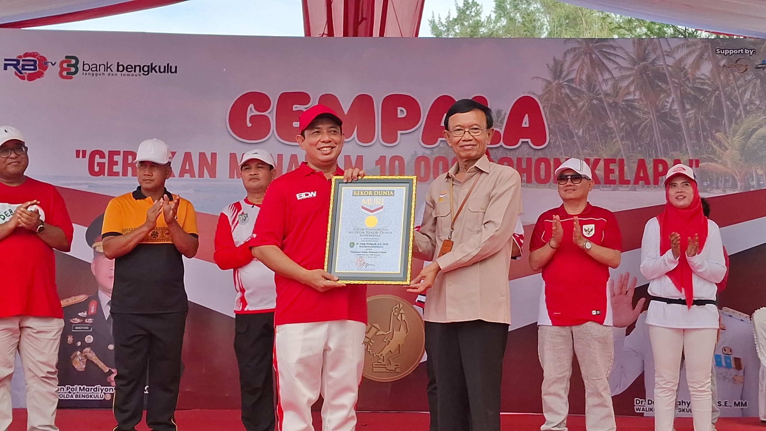 BENGKULU – Pemkot Bengkulu dibawah kepemimpinan Walikota Dedy Wahyudi dan Wakil Walikota Ronny PL Tobing catatkan sejarah melalui kegiatan Gerakan Menanam Sepuluh Ribu Pohon Kelapa (Gempala) yang telah dilaksanakan serentak, Senin (18/8/25).
